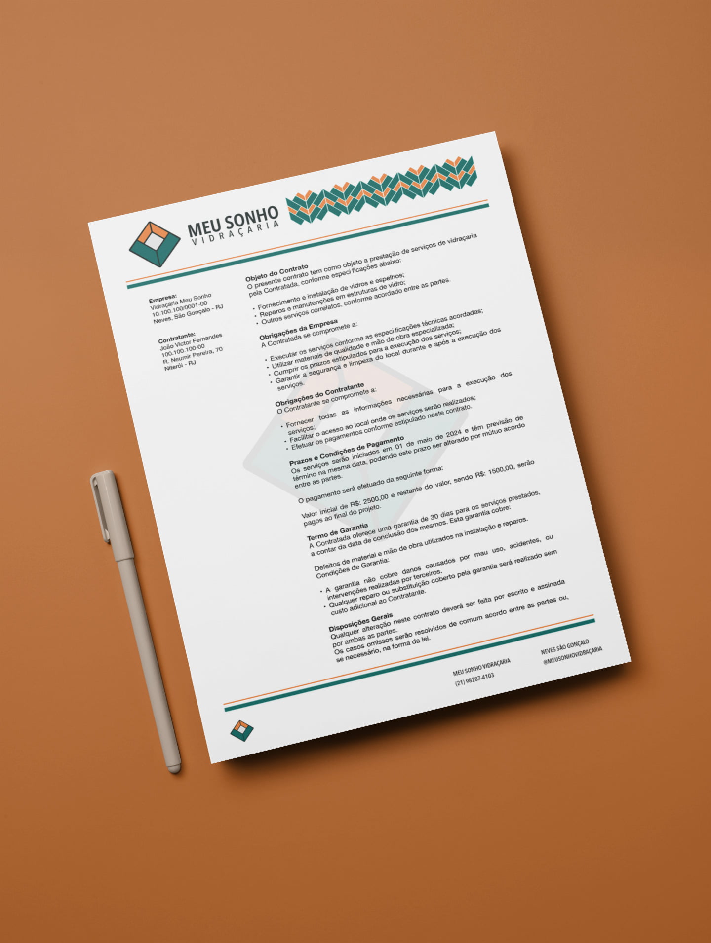 Meu Sonho Vidraçaria é uma empresa dedicada a oferecer soluções em vidro de alta qualidade, com serviços que vão desde o design até a instalação. Os valores da marca estão ligados à confiança, integridade e naturalidade, buscando sempre entregar resultados que superem as expectativas dos clientes.